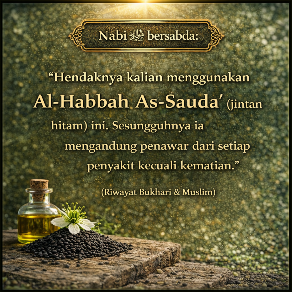“Hendaklah kamu menggunakan Al-Habbatus Sauda’ kerana sesungguhnya terdapat padanya penawar untuk segala penyakit kecuali mati.