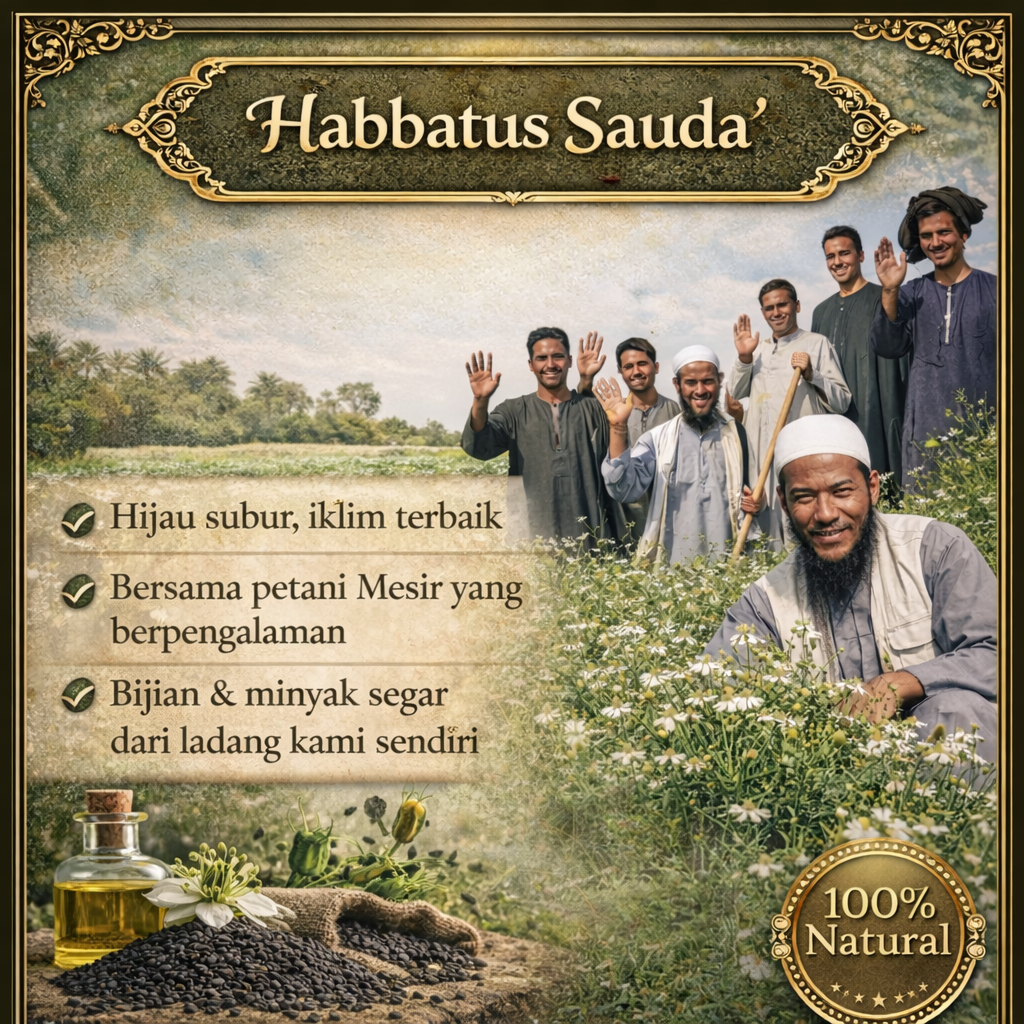 SEBAGAI PELANGGAN TENTU KITA MAHUKAN SUATU BRG YG BERQUALITI . ALHAMDULILLAH SETELAH PENCARIAN DAN KAJIAN PENYELIDIKAN YG LAMA DI LADANG LADANG HABBATUS SAUDA AKHIRNYA SYRKT KAMI MENEMUI HABBATUS SAUDA DARI BUMI ORGANIK YG MENGHASILKAN THYMOQUINONE PALING TINGGI DI MALAYSIA.BIJIRIN YG DI DATANGKAN TERUS DRP LADANG DGN PENJAGAAN MYK YG DI PROSES DENGAN BEGITU TELITI UTK MENGHASILKAN MYK YG SGT BERQUALITI TINGGI.